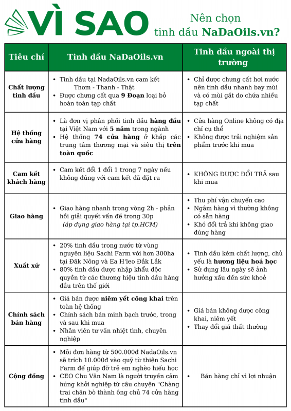 NaDa Oils cam kết dịch vụ hậu mãi chuẩn chuyên nghiệp: