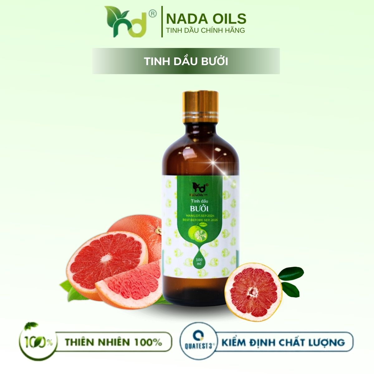 Sản phẩm tinh dầu vỏ bưởi Pomelo của NaDa Oils được kiểm định chất lượng nghiêm ngặt và đã được chứng nhận an toàn khi sử dụng. Chúng tôi cam kết cung cấp sản phẩm chất lượng cao, đáp ứng đầy đủ các tiêu chuẩn quốc tế về sản phẩm chăm sóc sức khỏe.
